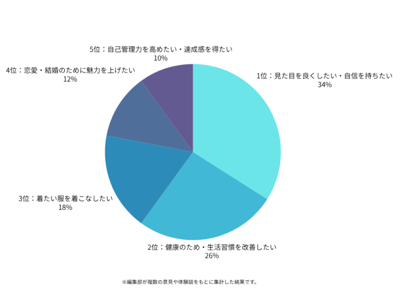 ダイエットする理由で最も多かったのは、見た目を改善して自信を持ちたいという声でした。